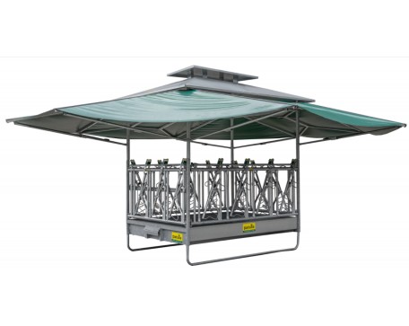 хранилка за големи бали, защитена от атмосферни влияния. Иновативният вариант на покрива се монтира директно върху основната рамка на хранилките. Благодарение на специалната си конструкция, хранилката предлага много голяма покривна повърхност (~ 42 м²) и, благодарение на вградения комин, осигурява приятен охлаждащ ефект. Ефектът на комина винаги създава движение на въздуха, което се възприема като приятно от животните, а също така държи досадните мухи далеч. Това създава привлекателно място за хранене на говеда и коне, като същевременно ги предпазва от пряка слънчева светлина и дъжд.