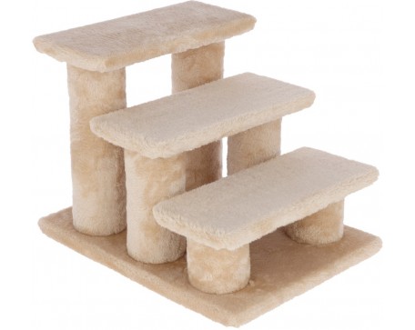 Благодарение на практичните размери на стълбата 45x35x34см и нейното сравнително малко тегло тя може лесно да бъде пренасяна и да се използва на различни места. Отличава се със здрава и неплъзгаща се конструкция и е снабдена с три стабилни стъпала с голяма площ и малка височина, покрити с мека плюшена бежова материя за по-удобно и безопасно качване и слизане. Всяко стъпало стои на две здрави стълбчета. Максималната товароносимост е 50 кг.
