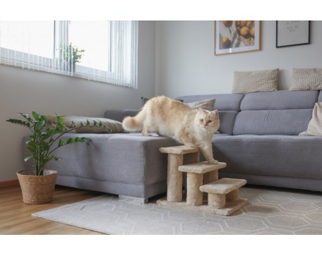 Многофункционалната стълба улеснява вашия домашен любимец самостоятелно да достига по-високи и труднодостъпни места, да се качва и да слиза от любимото си място - от леглото, дивана, кушетката, стола или креслото, при слизане и качване в кола. Предпазва опорно-двигателния му апарат и редуцира риска от увреждане на костната система, тазобедрените стави.