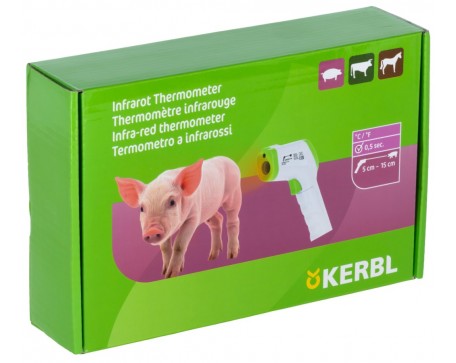 Инфрачервеният термометър Kerbl позволява безконтактно, бързо измерване на температурата на хора, животни и предмети - идеален за серийни измервания.