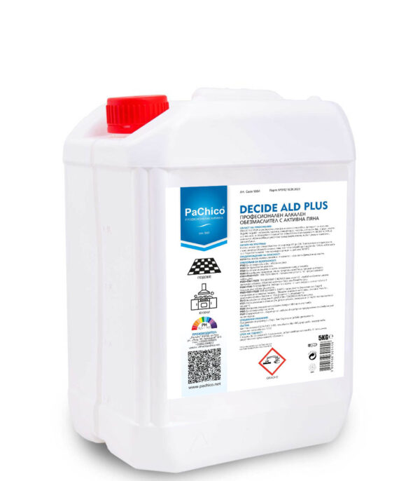 Приложение на продукта:DECIDE ALD plus е алкална активна пяна. Продуктът се използва в интензивното животновъдство, хранително-вкусовата промишленост и други индустрии. DECIDE ALD plus има силно обезмасляващо действие срещу растителни, животински и минерални замърсявания.